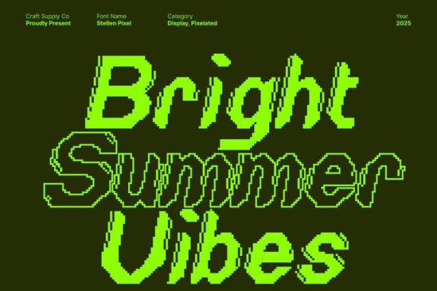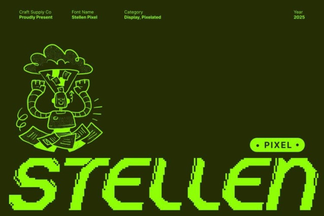 Stellen Pixel Font This is a techno-inspired sans serif font designed to deliver bold impact and unmistakable modern energy. With its clean geometric structure and powerful stance, this typeface channels futuristic style in every letter. The added pixel effect intensifies its digital personality, giving the font a cutting-edge edge that feels both contemporary and forward-looking.