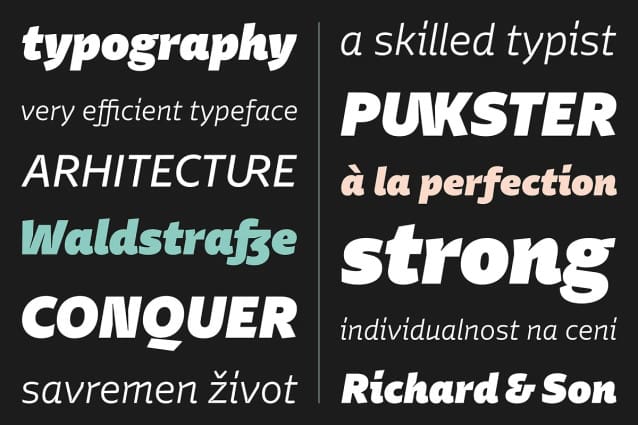 This carefully designed family consists of 8 weights, ranging from Thin to Black, each with matching true italics. It comes with a set of 566 characters per weight, supporting over 40 different languages using the Latin alphabet. Stena is the ideal choice for editorial, branding, corporate identity, and more.