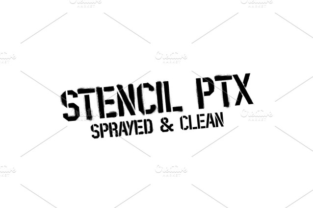 Stencil PTx Sprayed Font We created two styles, sprayed, to be used in display giving the idea of graffiti on the wall and the clean, to possibly be used in print. This is the idea We have of an old school stenciled typeface/look. This typographic masterpiece brings the raw energy and urban flair of stencil graffiti art to your fingertips.