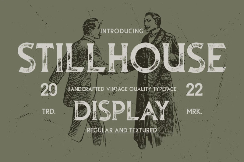 Stillhouse Vintage Font is a vintage serif font that features 2 styles – Textured & Solid. This typeface is great for achieving that rustic aesthetic which is popular in restaurant branding, apparel designs and product packaging.