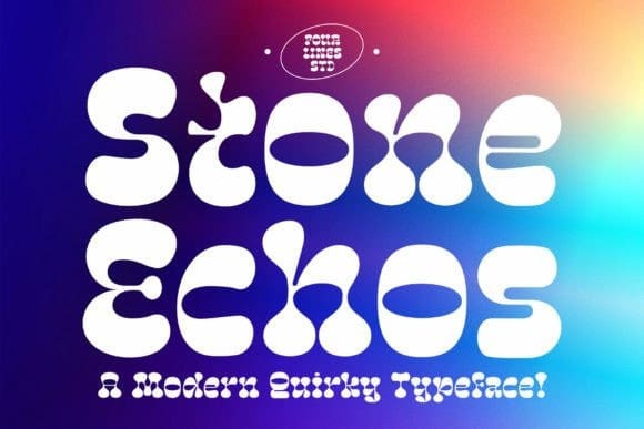 Stone Echos Font, your new go-to font for all modern and bold projects. Its unique, round bubbles infuse a touch of modernity and style into your designs, striking the perfect harmony between whimsy and elegance. Use Stone Echoes to craft an eye-catching logo or a dynamic poster – its distinctive yet refined characters serve as a vibrant catalyst for your inventive concepts.