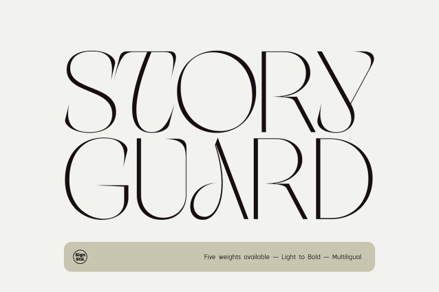 With a restrained contrast and carefully sculpted terminals, Story Guard embodies both sophistication and warmth. Its form is modern yet enduring — a visual narrative that guards the story it tells, with confidence and grace, making it a versatile choice for various design applications.