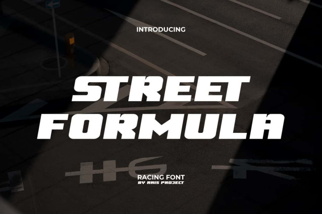 Street Formula Font is a sharp display font for racing theme, by RaisProject. This font can make your design stand out because of its sharp and easy-to-read characters. It will be great for poster, label, signage, stationery, custom design, product packaging, quotes, brand image, advertisement, invitation, marketing material, website page, and more!