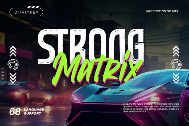 This font is made for personal use. Get the full version of the fonts if you want to use it for commercial purposes by purchasing the licenses here: https://creativemarket.com/ditatype/92093837-Strong-Matrix?u=fontlot123