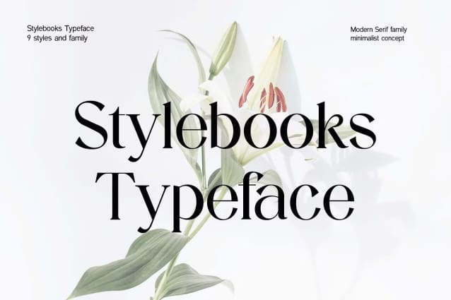 Stylebooks Typeface Font Family: The modern serif display font feels beautiful classy, elegant, and stylish. This font is ideally suited for a wide variety of projects, such as signature, stationery, logo, wedding, typography quotes, magazine or book covers, website headers, branding, and more. Also, fashion-related branding or editorial design displays both masculine and feminine qualities.