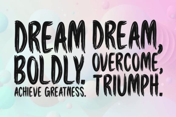 Success Follows Dreams Font, a fresh brush display font designed to elevate your projects. With its bold and dynamic style, Success Follows Dreams is ideal for a variety of uses including stationery, logos, apparel design, print materials, and web headers. Whether you’re creating a flyer, poster, or album cover, this versatile font adds a touch of energy and flair to any design.
