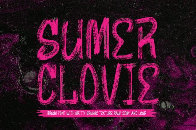 Introducing Sumer Clovie, a freestyle brush font moving with energy. This font was created with digital brush strokes, carefully vectorized to keep the textures. Sumer Clovie is a street font that delivers a loud message and strong.