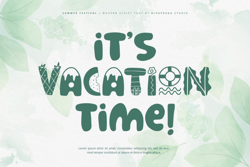 Summer Festival Display Font is a playful display font with authentic and playful feels. It will be perfectly used for Branding, Logo Design, Lettering, Logotype, Clothing, Poster, magazine, packaging, posters, shopping bags, t-shirts, book covers, photography, special events and other design project.