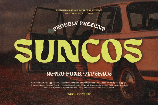 Suncos Retro Font is a retro funk fonts that feels casual and clean an incredible modern retro aesthetic. Use this display font to add that special retro funk vintage touch to any design idea you can think of!