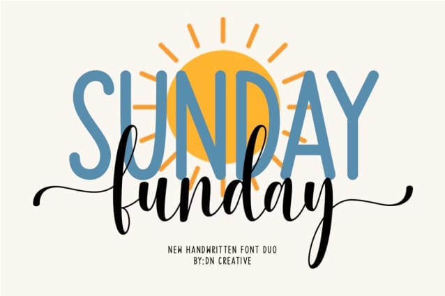 This font is made for personal use. Get the full version of the fonts if you want to use it for commercial purposes by purchasing the licenses here: https://creativemarket.com/DN-Creative/285745269-Sunday-Funday-Duo?u=fontlot123