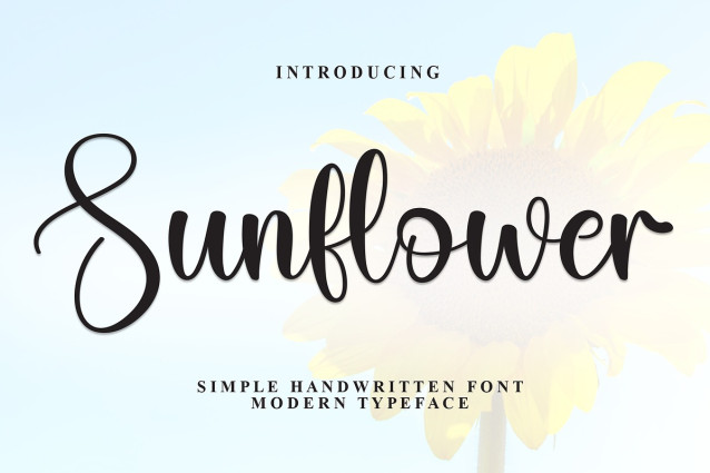 Sunflower Handcrafted Typeface A popular and professional script font. Modern and elegant, this typeface is made of beautiful creative strokes.This font is perfect for your creative ideas, both formal and informal. It has a modern style with a touch of creative ideas that is very suitable to be applied anywhere that requires creative ideas such as invitation cards,letterheads, website logos, social media, banners, advertisements, brochures, packaging products, leather products, and any product that requires writing.