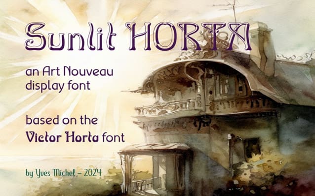Sunlit Horta Font: The period around 1900 produced the Impressionists in painting and Art Nouveau in architecture and graphic design. I have always admired the Arnold Boecklin typeface, which is a remarkable illustration of this era.