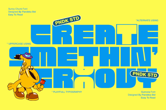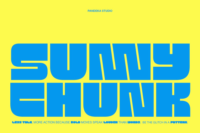 Sunny Chunk Font is a bold and groovy display font with a modern retro touch. Its condensed, chunky letterforms bring a strong visual impact, making it perfect for posters, headlines, packaging, music covers, and street-style branding. With its playful yet powerful vibe, Sunny Chunk ensures your typography stands out and grabs attention instantly.