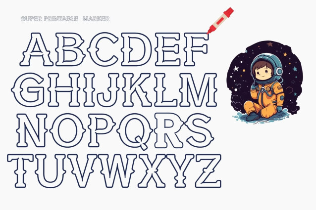 Super Printable Marker Font – Designed just for teachers, parents, and creative makers, this hand-drawn, outline-style marker font is made to be colored in, traced, or used for standout headlines. It’s super easy to use, ultra-legible, and packed with fun personality—absolutely perfect for kids’ activities, school worksheets, coloring books, and craft projects.