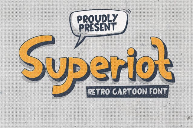 Superiot Display Font is inspired by the style of letters in comics that have less serious and fun characters. Superiot is a sans serif with display font characters which gives a fun and design impression for retro pop art. Superiot is perfect for creating designs with non-serious concepts, designs for children, book headers, and of course for text on comics.