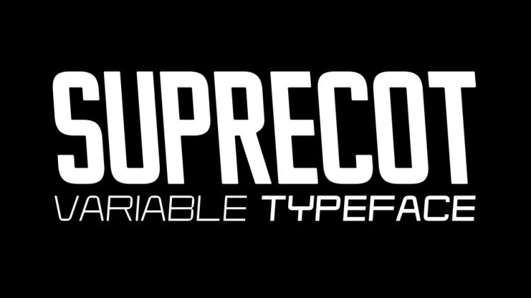 Suprecot Sans Serif Font is a limited character set variable typeface with 3 axis: weight, width, slant.