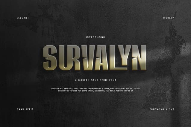 Survalyn Font, a modern sans serif font designed to make a bold impact with its sleek simplicity. With clean lines and contemporary styling, Survalyn offers versatility and style for a wide range of design projects.