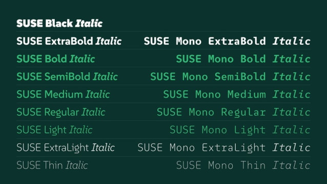 SUSE stands out with its distinctive design, perfect for modern, open-source, and tech-focused projects. Its variety of weights allows for flexibility in design, from headlines to body text, ensuring consistency and harmony across different use cases.