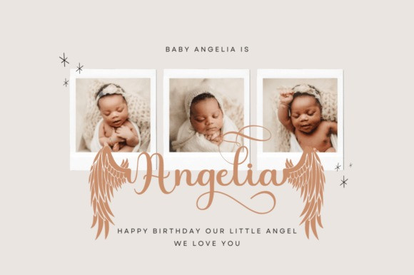Sweet Angel Script Font is a modern calligraphy design featuring a casual look and beautiful swashes. It can be used for various purposes such as logos, product packaging, wedding invitations, branding, headlines, signage, labels, signatures, book covers, posters, quotes, and more.
