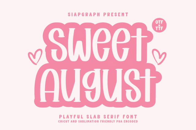Sweet August Font is a playful, rounded slab‑serif font that radiates cuteness and positivity—perfect for cheerful prints, pastel‑themed crafts, and anything that needs a dash of sweet charm. Inspired by hand‑lettered candy‑shop signage and softened with modern curves, this typeface is built for effortless readability on both digital and physical products.