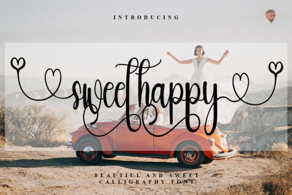 Sweet Happy Script Font is a romantic and sweet calligraphy typeface with characters that dance along the baseline. It will add a luxury spark to any design project that you wish to create! This font is PUA encoded which means you can access all of the amazing glyphs and ligatures with ease!