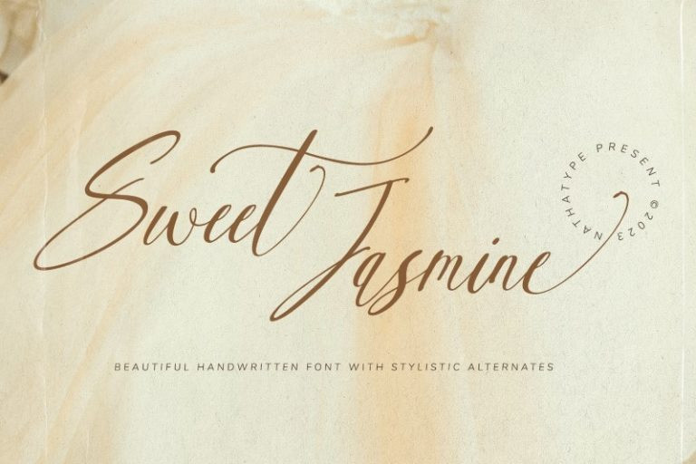 Sweet Jasmine Script Font is a handwriting-like script font created with mixing the natural handwriting elements with natural nuances to produce warm, flowing-looking designs. Its letters are interconnected in high contrasts, and it is suitable to apply for big text sizes because it has somewhat complicated font style details to ease the font to read. In addition, you can enjoy the available features here.