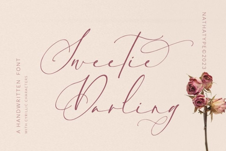 Sweetie Darling Font is a cursive-style handwriting script font. Like other cursive font designs, the letters are interconnected, but another character of this font is that the letters have high contrasts in curved edges to beautify the display. Due to the seemingly complex font style details to add the font’s legibility, it is suggested to apply this font for big text sizes. Additionally, you can enjoy the available features here.
