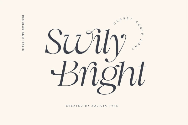 Swily Bright Font. Trendy, classy & modern style serif font for your fancy projects. Elegant, fashion and classic style on SwilyBright font will be great for any branding project. With 2 style Regular and Italic, alternates and ligatures will help you to create unique letters