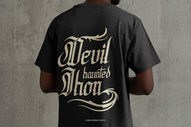 Syclone Blackletter Font, from Denustudios, suitable for any projects such as: logos, branding projects, homeware designs, product packaging, mugs, quotes, posters, shopping bags, t-shirts, book covers, name card, invitation cards, greeting cards, label, photography, watermark, special events, and all your other lovely projects that need a Blackletter Font taste.