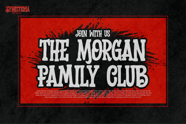 This font is used only for demos (Demo license). If you want to use this font for commercial use please contact: https://creativemarket.com/Gassstype/292061196-Synisteria-Horror-Display-Font