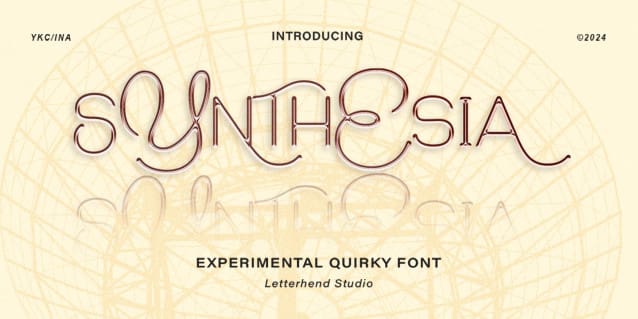 Synthesia Font – a playful, experimental display font that blends style, elegance, and artistic flair into one striking package. Perfect for making a statement in logos, invitations, labels, magazines, books, and more, this font adds a touch of sophistication to everything from fashion and makeup to stationery and advertising. Let Synthesia elevate your design with its unique charm!