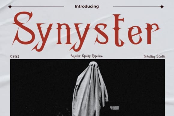 Synyster Font is a font with a gothic and dark style theme, although it can also be combined with modern trendy serif styles now, perfect for horror or dark impressions. can be used in logotype media designs, merchandise, posters, t-shirts, and the like