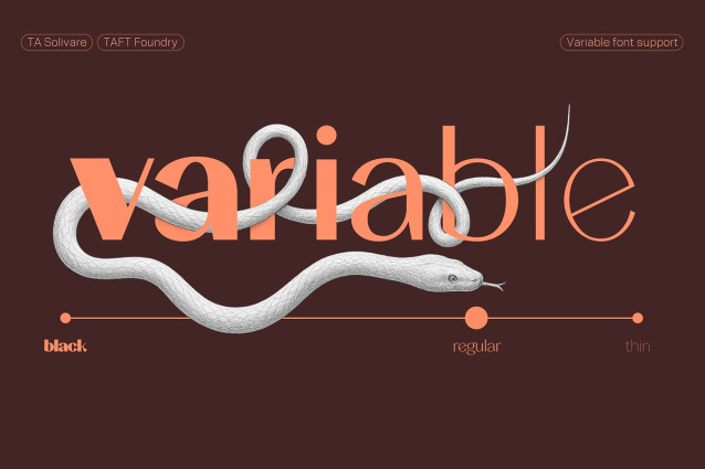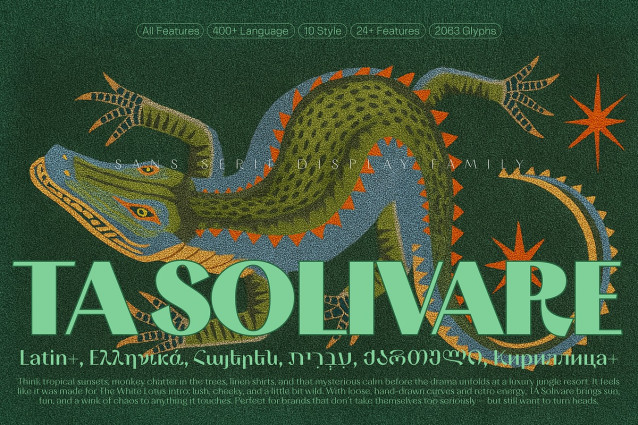 TA Solivare balances visual tension with restraint — offering a distinctive voice without excessive decoration. With six scripts and ten weights, it adapts well across multilingual and multidisciplinary contexts.
