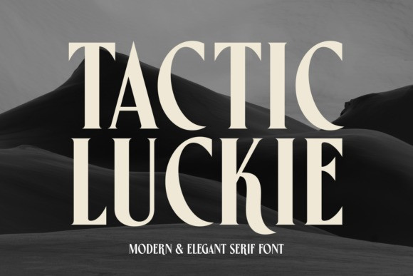 Tactic Luckie Font, a modern and elegant serif font. The artistic and minimalist landscape complements the font’s bold, sculptural, and stylish letterforms.