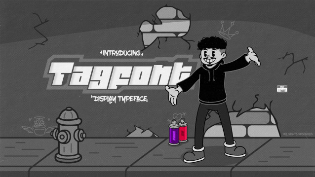 Today, Tagfont Outline features 157 characters, including uppercase, lowercase, numbers, accents, and punctuation — ready to bring a strong voice to creative titles, packaging, apparel, posters, bold branding, and any project that demands design with presence.