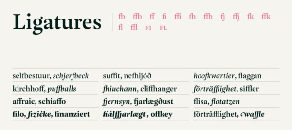 The italics contain a few dozen swash alternates, for use in headlines, titles as well as logo designs. All of the fonts include small caps, 14 f-ligatures, and case-sensitive punctuation. The default numeral style is set at proportional oldstyle figures with tabular and lining figures available as OpenType alternates. A full-range of numerators and denominators for fraction-typesetting has been included for its compatibility with a widespread range of contents. With letter-forms quite comfortable to read, Tara’s language support covers an extended Latin character-set and is an excellent choice for editorial projects across print media. Tara Font was designed by Tania Alvarez Zaldivar, a type and graphic designer from Mexico, and a graduate of the Type & Media program at the Royal Academy of Arts (KABK) in The Hague.