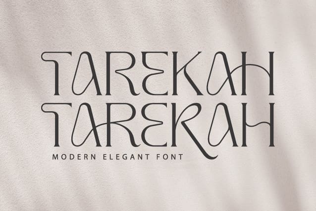 Tarekah Font – Modern Serif Font, created by Denustudios, A serif modern and classic typeface that has own unique style & modern look. This typeface is perfect for an elegant & luxury logo, book or movie title design, fashion brand, magazine, clothes, lettering, quotes, and so much more.