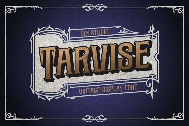 Tarvise Vintage Font , a bold and timeless display font with a vintage aesthetic that commands attention. Crafted in uppercases with a solid, bold weight, Tarvise boasts clean and consistent letterforms that deliver a powerful presence. Its sturdy shapes are perfect for designs that need a bold yet polished look. Plus, with an available extrude version, Tarvise adds depth and dimension to your projects. This font gives ornament sets as extra.