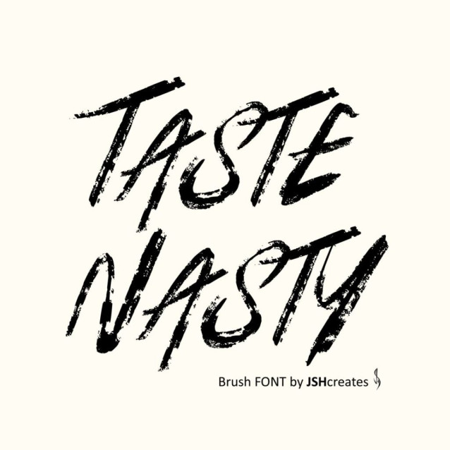 Taste Nasty Font – Handwritten brush font. Perfect for advertising and display purposes, including banners, book covers, shirts, posters, logos and much more! All caps font, including numbers, punctuation and some characters.