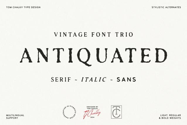 TC Antiquated Sans Font – Antiquated Font: inspired font collection! This versatile trio of typefaces, each available in three distinct weights, has been designed to be a wonderful blend of modern and rustic styles.