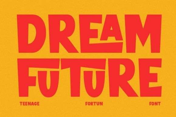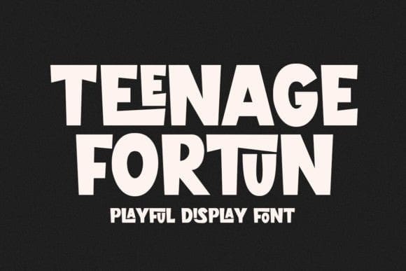The boxy design of Teenage Fortun gives it a modern and geometric aesthetic. Each letter is crafted with clean lines and sharp angles, creating a visually impactful presentation.