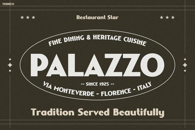Every character in TERDECO reflects a sense of symmetry, proportion, and confidence inspired by the golden age of design. The combination of strong vertical lines and graceful curves brings depth and personality to any layout. As a result, it feels equally at home on modern branding as it does on vintage-inspired visuals. In addition, its high readability ensures that it performs beautifully in both print and digital applications, from posters and magazines to signage and packaging.
