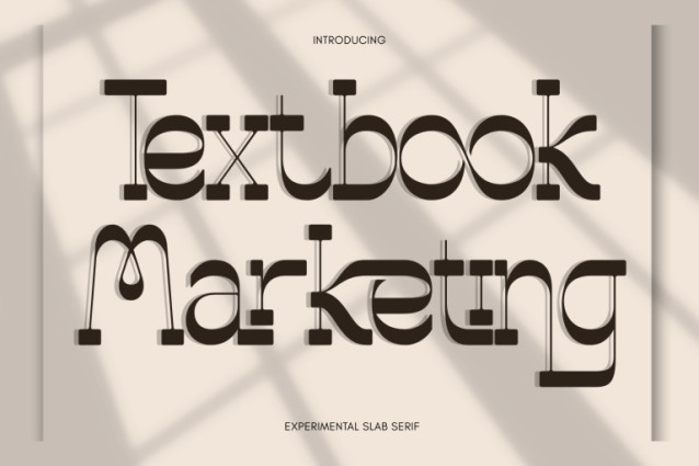 Textbook Marketing – Slab Serif Display Font is an experimental slab serif display font featuring a bold, modular, and highly distinctive typographic structure. The design combines strong slab serifs with unconventional proportions, thin connecting stems, and geometric construction, creating a modern reinterpretation of classic slab serif principles. This font stands out through its engineered appearance: heavy vertical strokes are balanced by rounded curves and precise slab terminals, while unique joints and connector details add a conceptual, almost mechanical feel. The contrast between solid forms and delicate linking elements gives Textbook Marketing a sophisticated yet playful personality.