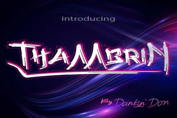 Thambrin Display Font is a mysterious and cool display font. Whatever the topic, this font will be a great asset to your font library, as it has the potential to enhance any creation. It’s perfect for logos, posters, banners, covers, movies, music, and more.