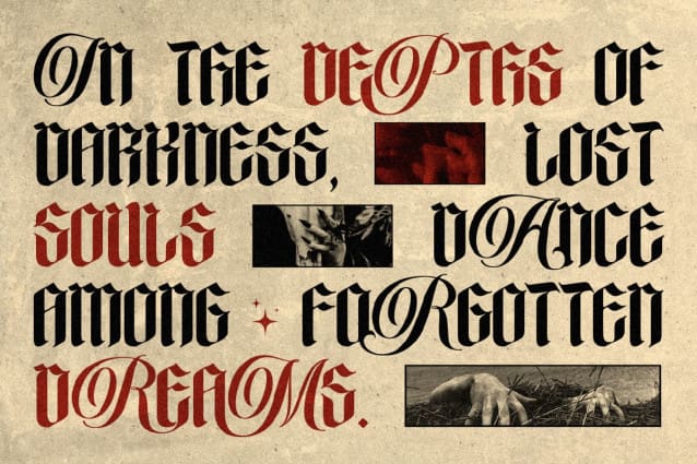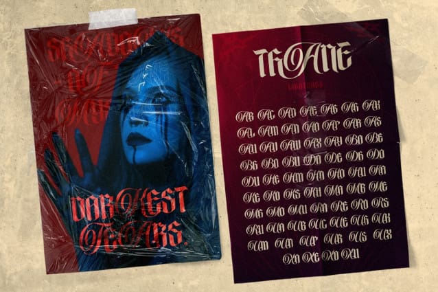 Thane Blackletter Font, our gothic hybrid font. A stunning fusion of blackletter and script. This unique typeface combines the bold, intricate lines of blackletter with the flowing grace of cursive, creating a visual harmony that captures attention. Perfect for branding, invitations, streetwear, t-shirt design or apparel, merchandise, poster, magazine and any project that demands a touch of drama, melancholy, sophistication but still have power.