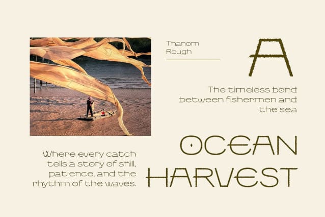 Thanom Rough Font is a modern display font that seamlessly blends sleek, futuristic design with a rugged, raw texture. Its clean, geometric shapes exude innovation and technological sophistication, while the rough texture introduces an industrial, tactile feel, creating a visually dynamic and impactful typeface. The contrast between polished lines and raw edges makes Thanom Rough ideal for designs that need a bold and cutting-edge aesthetic with a touch of unrefined, gritty character.