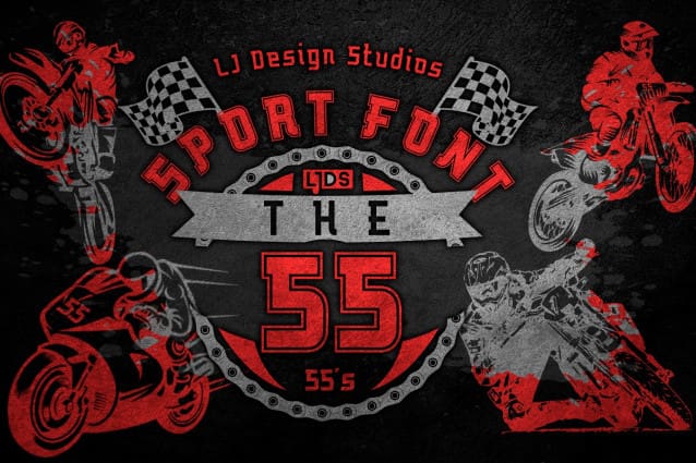 The 55s Font – we created a semi-sports font with a very elegant style thinking of lovers of motor sports, especially high-speed motorcycles. With a small body of research, we bring together ideas, concepts and art forms to achieve this simple yet modern and stable result.