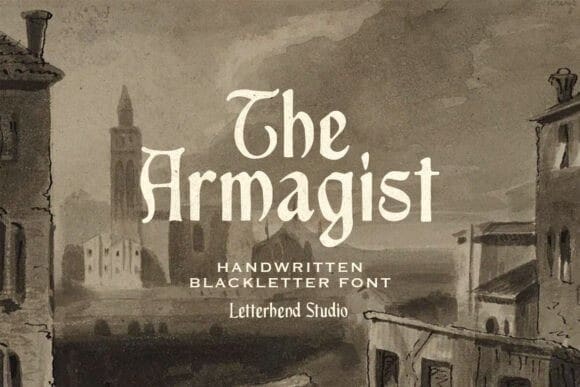 The Armagist Font, a handcrafted blackletter font that brings the spirit of ancient manuscripts to life. Its bold, textured strokes and subtle imperfections give a sense of authenticity, perfect for creating logos, posters, book covers, or branding with a historical or fantasy theme. This font pairs beautifully with vintage aesthetics, making it a versatile choice for designs that need a touch of old-world charm.