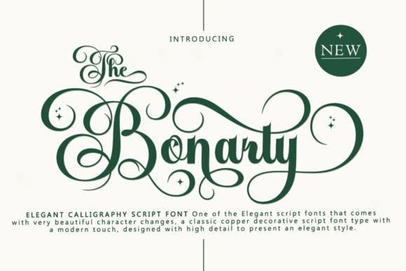Staying true to its classic roots, Bonarty Script is ideal for formal applications including but not limited to invitations, restaurant menus, logos, fashion-forward designs, beauty and makeup branding, stationery, novels, magazines, storybooks, greeting/wedding cards, packaging, and advertisement labels.
