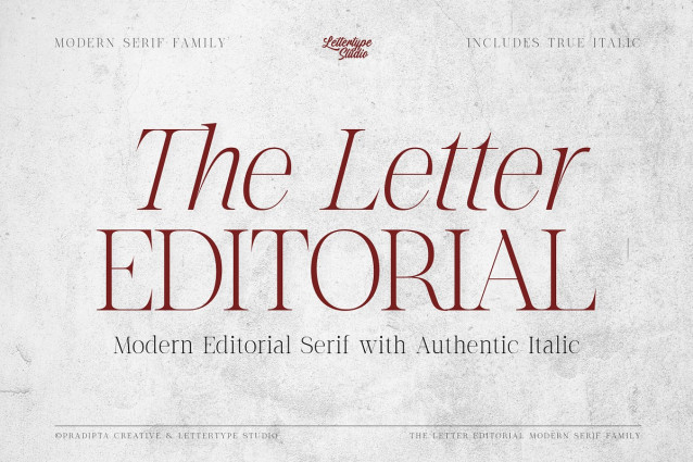 This font is used only for demos (Demo license). If you want to use this font for commercial use please contact: https://creativemarket.com/lettertypestudio/291596302-The-Letter-Editorial-%E2%80%93-Modern-Serif?u=fontlot123